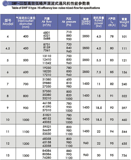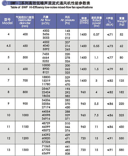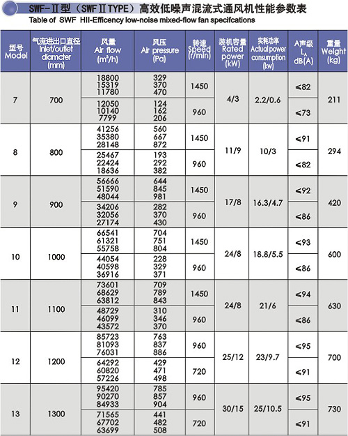 SWF系列混流風機具有效率高、結構緊湊,安裝方便、運行可靠、噪聲低等顯著特點,它榮獲了國家級“星火”獎、上海市科技進步獎,獲國家實用新型專利、被國家科委列入國家級重點科技成果推廣項目產品。