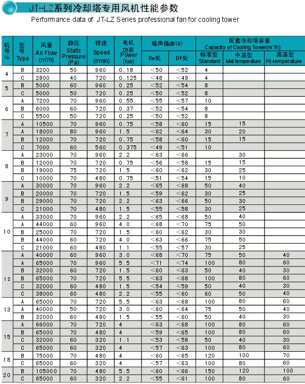 | JT-LZ、LTF系列冷卻塔專用風(fēng)機(jī)是本公司與上海交通大學(xué)經(jīng)過二十多年的聯(lián)合研制、開發(fā)并大批量生產(chǎn)的產(chǎn)品,進(jìn)行過四次更新?lián)Q代,使產(chǎn)品更加精益求精,曾分別多次獲得浙江省、上海市環(huán)保部門重大(優(yōu)秀)科技成果獎和科技進(jìn)步獎、國家質(zhì)量獎等,其中寬葉、大弦長、空間扭曲型設(shè)計(jì)還榮獲國家發(fā)明獎。該產(chǎn)品具有效率高、噪聲低、耗電省、運(yùn)行可靠等特點(diǎn),現(xiàn)已廣泛應(yīng)用于各冷卻塔制造商的方形橫流式冷卻塔、方形(圓形)逆流式冷卻塔,其派生型還應(yīng)用于蒸發(fā)式冷凝器、風(fēng)冷、油冷等裝置。 JT-LZ、LTF系列冷卻塔專用風(fēng)機(jī)可根據(jù)用戶不同使用場合的要求分別采用鋁合金、玻璃鋼材質(zhì)生產(chǎn),直徑小于1500mm的風(fēng)機(jī)亦可采用ABS或PLOYCARBONATE材質(zhì)。 |
